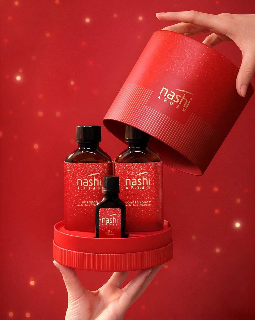 This exclusive set features Nashi’s must-have essentials, infused with the cozy, festive Candy Dust fragrance. Inside you’ll find
